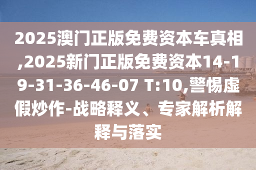 2025澳門正版免費(fèi)資本車真相,2025新門正版免費(fèi)資本14-19-31-36-46-07 T:10,警惕虛假炒作-戰(zhàn)略釋義、專家解析解釋與落實(shí)