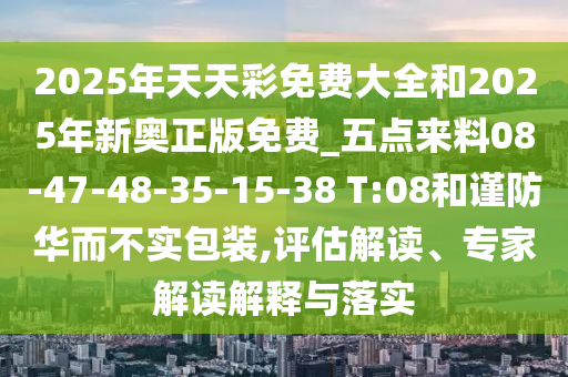 2025年天天彩免費大全和2025年新奧正版免費_五點來料08-47-48-35-15-38 T:08和謹防華而不實包裝,評估解讀、專家解讀解釋與落實