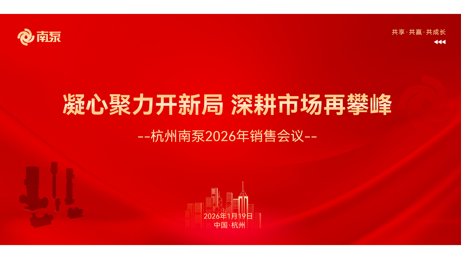 2026年1月19日,杭州南泵流體機(jī)械有限公司2026年銷(xiāo)售會(huì)議在杭州舉行,本次會(huì)議以“凝心聚力開(kāi)新局,深耕市場(chǎng)再攀峰”為主題,公司領(lǐng)導(dǎo)班子、各銷(xiāo)售大區(qū)及辦事處負(fù)責(zé)人等核心骨干齊聚一堂,旨在共同復(fù)盤(pán)2025年發(fā)展成果,分析當(dāng)前形勢(shì),擘畫(huà)2026年戰(zhàn)略藍(lán)圖。