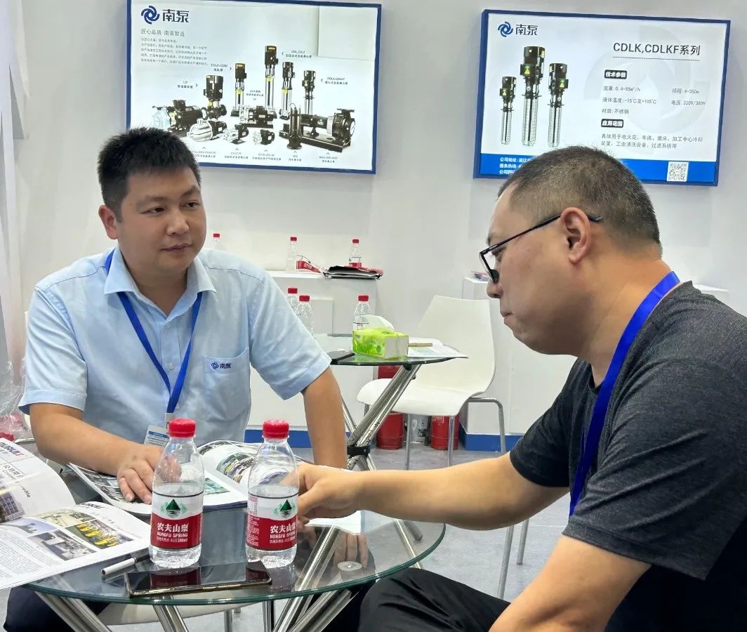 杭州南泵總經(jīng)理黃旭亮及幾大分中心區(qū)總親臨展位現(xiàn)場,熱情接待了前來參觀咨詢的同仁及客戶!杭州南泵展示的CDLK,CDLKF系列浸入式多級離心泵得到了機床輔機、工業(yè)清洗設備、過濾系統(tǒng)等數(shù)十家參展企業(yè)的認可,并達成了初步合作意向。