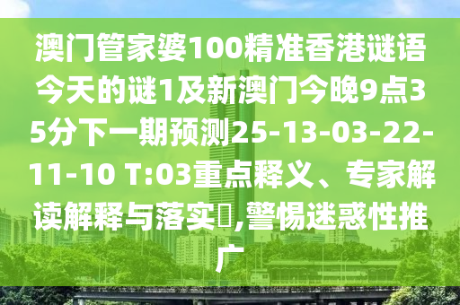 澳門管家婆100精準(zhǔn)香港謎語今天的謎1及新澳門今晚9點(diǎn)35分下一期預(yù)測25-13-03-22-11-10 T:03重點(diǎn)釋義、專家解讀解釋與落實?,警惕迷惑性推廣