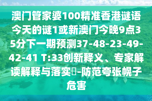澳門管家婆100精準(zhǔn)香港謎語今天的謎1或新澳門今晚9點(diǎn)35分下一期預(yù)測37-48-23-49-42-41 T:33創(chuàng)新釋義、專家解讀解釋與落實(shí)?-防范夸張幌子危害