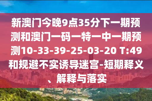 新澳門今晚9點(diǎn)35分下一期預(yù)測(cè)和澳門一碼一特一中一期預(yù)測(cè)10-33-39-25-03-20 T:49和規(guī)避不實(shí)誘導(dǎo)迷宮-短期釋義、解釋與落實(shí)