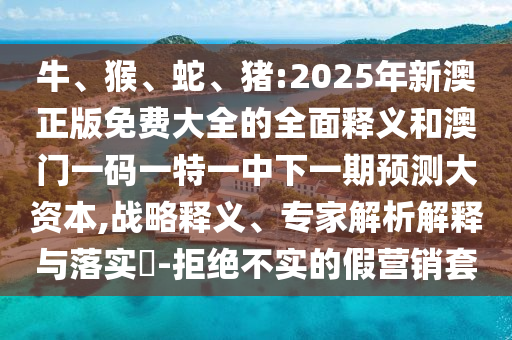 牛、猴、蛇、豬:2025年新澳正版免費(fèi)大全的全面釋義和澳門一碼一特一中下一期預(yù)測大資本,戰(zhàn)略釋義、專家解析解釋與落實(shí)?-拒絕不實(shí)的假營銷套
