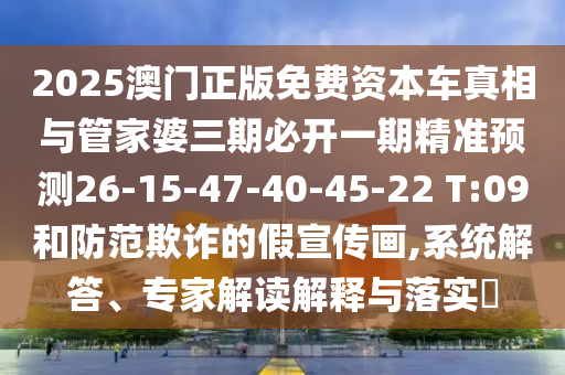 2025澳門正版免費(fèi)資本車真相與管家婆三期必開一期精準(zhǔn)預(yù)測(cè)26-15-47-40-45-22 T:09和防范欺詐的假宣傳畫,系統(tǒng)解答、專家解讀解釋與落實(shí)?