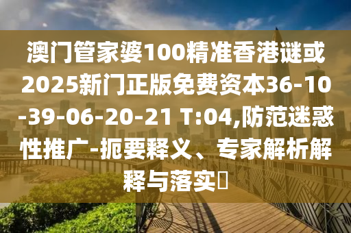 澳門管家婆100精準(zhǔn)香港謎或2025新門正版免費資本36-10-39-06-20-21 T:04,防范迷惑性推廣-扼要釋義、專家解析解釋與落實?