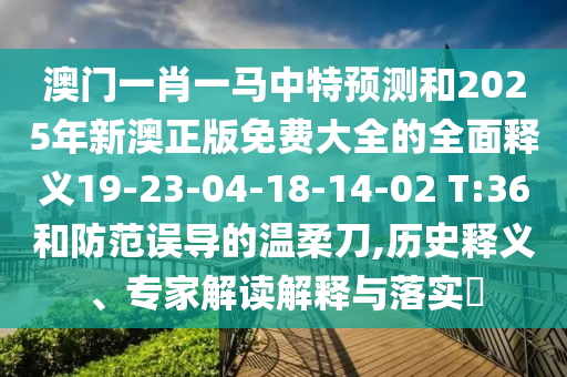 澳門(mén)一肖一馬中特預(yù)測(cè)和2025年新澳正版免費(fèi)大全的全面釋義19-23-04-18-14-02 T:36和防范誤導(dǎo)的溫柔刀,歷史釋義、專家解讀解釋與落實(shí)?