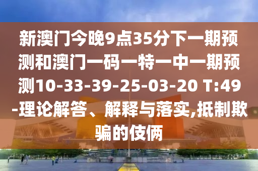 新澳門今晚9點(diǎn)35分下一期預(yù)測和澳門一碼一特一中一期預(yù)測10-33-39-25-03-20 T:49-理論解答、解釋與落實(shí),抵制欺騙的伎倆