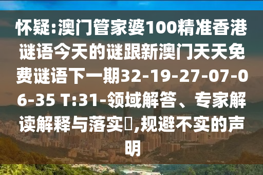 懷疑:澳門管家婆100精準(zhǔn)香港謎語今天的謎跟新澳門天天免費謎語下一期32-19-27-07-06-35 T:31-領(lǐng)域解答、專家解讀解釋與落實?,規(guī)避不實的聲明